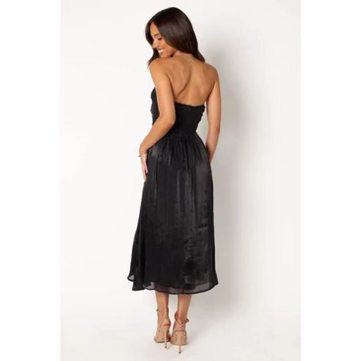 Introducing the ultimate midi dress for all your fashion-forward needs! With a strapless style and straight neckline, this dress is perfect for any occasion.