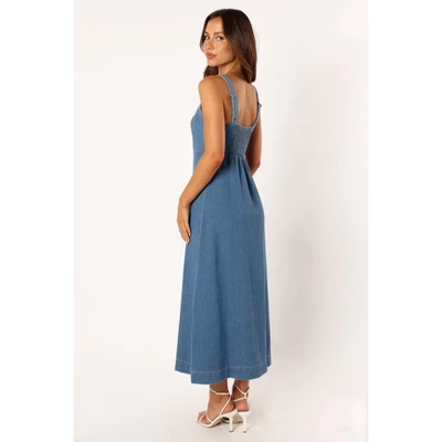 This midi dress in denim is the perfect addition to your wardrobe! It’s designed with functional button down close and front pockets. Featuring a shirred back panel for extra comfort.