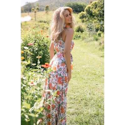 Look your best in this beautiful maxi dress! Featuring a high round neckline with button close, a back neck opening with button close, an elasticised waistband, belt loops and detachable waist tie, this dress is sure to be a figure-flattering favorite.
