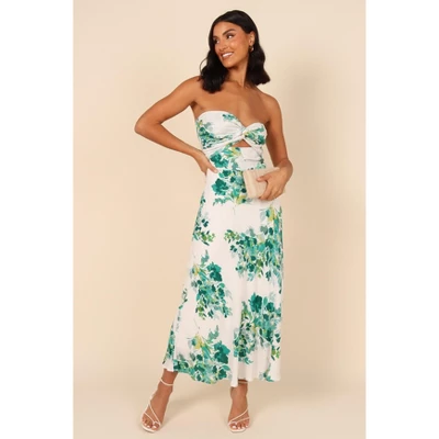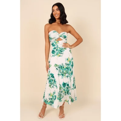 Welcome Summer in style with this midi dress! The strapless design will flatter any figure, and the sweetheart neckline adds a touch of femininity. Turn heads at any party with the front twist feature and cut out detail under the bust.