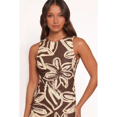 Step into effortless elegance with the Xara Mini Dress in Chocolate Floral. This trend-forward piece combines a flattering mini length with a high round neckline for a chic yet versatile silhouette.